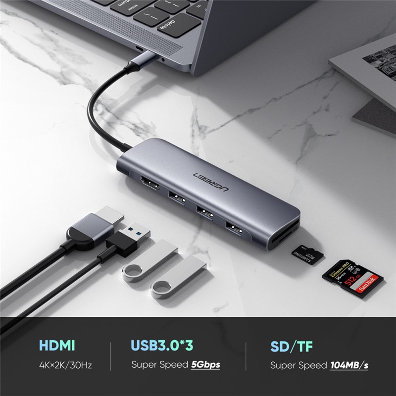 Ugreen Docking Station USB TypeC to HDMI USB 3.0 Hub SD TF