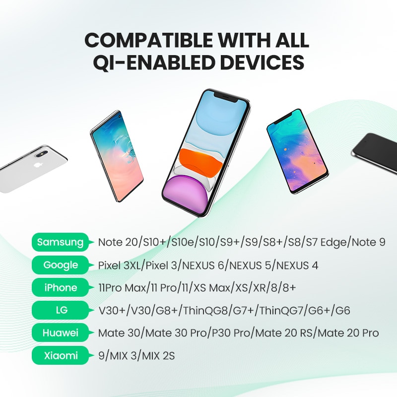 Brand Name: UGREEN Features: With Charging Indicator Features: With Cable Features: With LED Light Connector Type: Type C Certification: FCC Origin: CN(Origin) Compatible Brand: Apple iPhone Max. Output Power: 10W Feature 1:: 10W 7.5W 5W Qi Wireless Charger,Wireless Charging Feature 2:: Mobile Phone Wireless Charger Feature 3:: Fast Wireless Charger Feature 4:: Wireless Charging Dock Station Phone model 1:: for iPhone11 11Pro Max X XS XS Max XR…